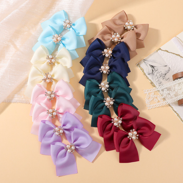 4 Pçs Vinho Vermelho Bowknot Pérola Boutique Grampos De Cabelo Para Mulheres Menina Linda Fita Barrette Princesa Headwea