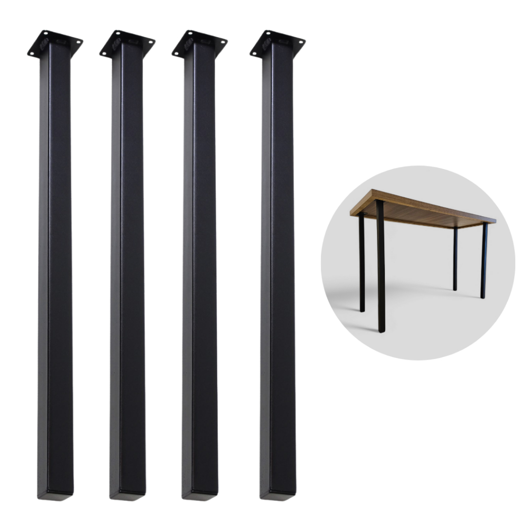 4 Pés de Mesa 70 Cm Altura Tubo Aço Slim Preto
