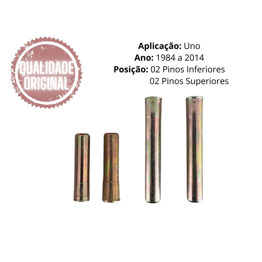 PINO PORTA DOBRADIÇA - PEÇA SIMILAR A ORIGINAL APLICAÇÃO: Uno: 1984/1985/1986/1987/1988/1989/1990/1991/1992/1993/1994/1995/1996/1997/1998/1999/2000/2001/2002/2003/2004/2005/2006/2007/2008/2009/2010/2011/2012/2013/2014 Kit composto por 4 peças Posição: Inferior e Superior