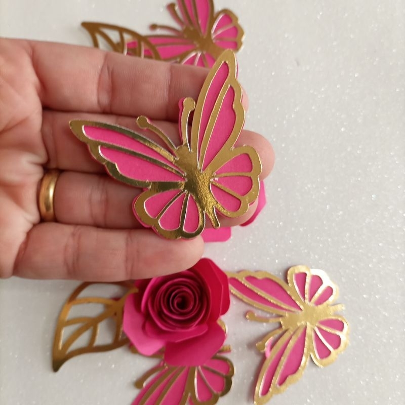 | 4 rosetas e 4 borboletas para topo de bolo flor 3d rosa este produto | R$ 21,00 | — | 4.7/5 | 6 |