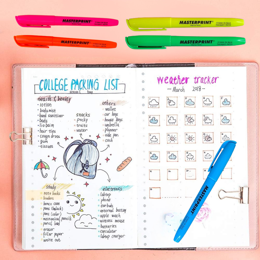4 Un Marca Texto Neon Amarelo Masterprint Ponta Chanfrada Secagem Rápida
