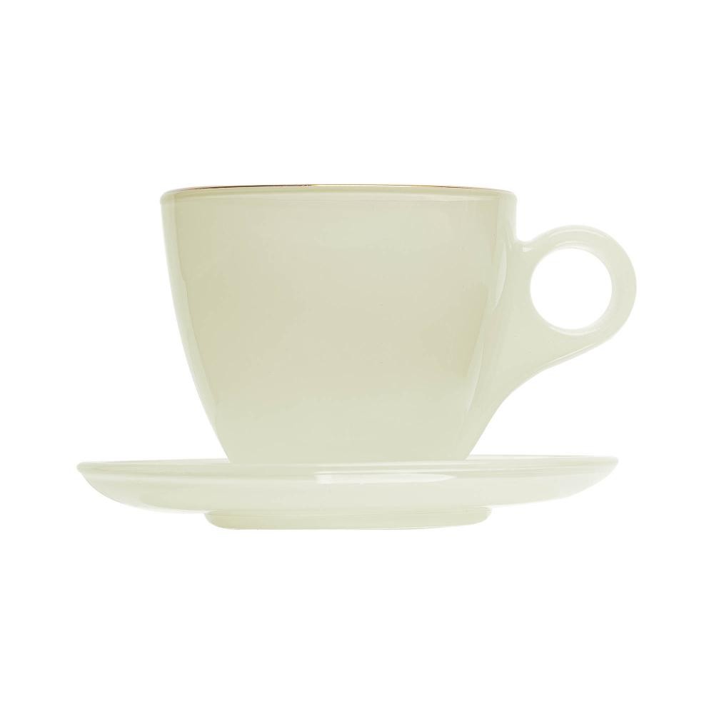 4 Xícaras Wolff Milky de Vidro com Fio de Ouro e Pires 170ml