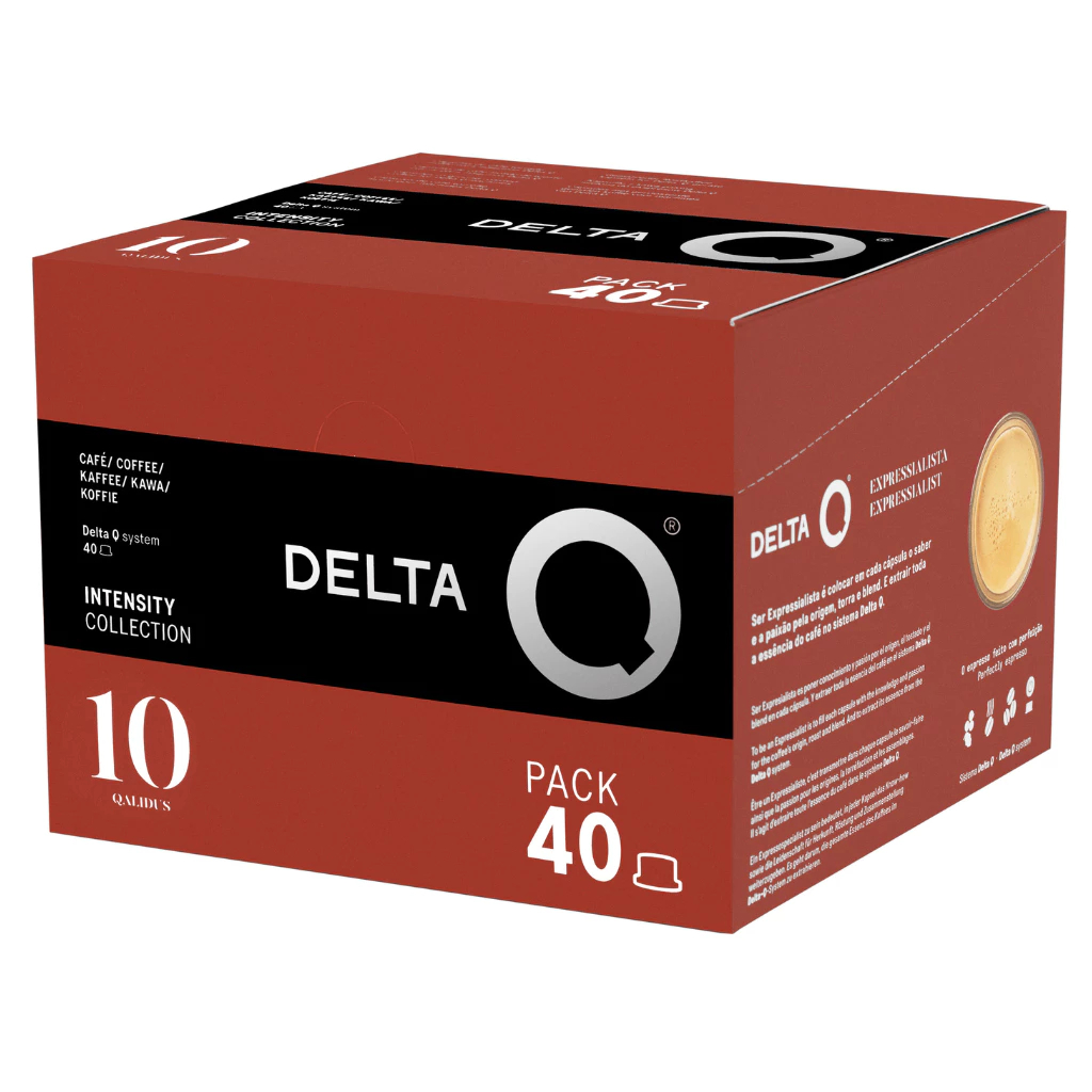 POR QUE ESCOLHER A DELTA Q? - Café padrão europeu com o simples toque de um botão. - Cápsulas que preservam todo o sabor e aroma. - Cafés selecionados de diferentes regiões do mundo, com variedade de intensidades. - Produzido em Portugal e disponível em diversos países. CONTEÚDO: 1 Caixa com 40 cápsulas Delta Q. Totalizando 40 cápsulas. SABOR DO CAFÉ: Delta Q Qalidus (Intensidade 10): Fusão de cafés robustos de Angola e Camarões com cafés arábica de Honduras. Um espresso encorpado e muito intenso, com forte presença na xícara, notas de caramelo e leve acidez. Ideal para quem procura uma bebida de alta intensidade e sabor duradouro. Sem adição de açúcar. APENAS PARA CAFETEIRAS DELTA Q! Funciona perfeitamente em todos os modelos de máquinas Delta Q. Modelos: Milk Qool, Qool Evolution, Qlip e Qool Auto. ENVIO DO PEDIDO: Após a confirmação de pagamento, o seu pedido será enviado no prazo máximo de 24 horas úteis. DETALHES DO PRODUTO: - Marca: Delta Q - Compatível com cafeteiras Delta Q - Condições de Armazenamento: Conservar em local fresco e seco - Fabricado em Portugal