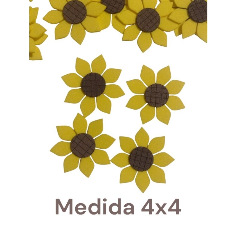 40 apliques no Eva molde girassol medida 4x4 trabalhamos com outras medidas também. precisando é só enviar uma mensagem pelo chat Visite nossa loja na shopee.
