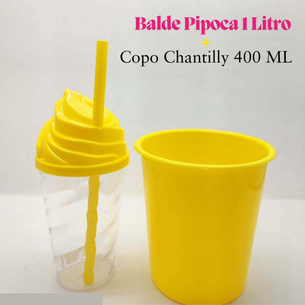 40 Itens Kit Festa Lembrancinha Liso 20 Balde De Pipoca 1LT + 20 Copo Chantily