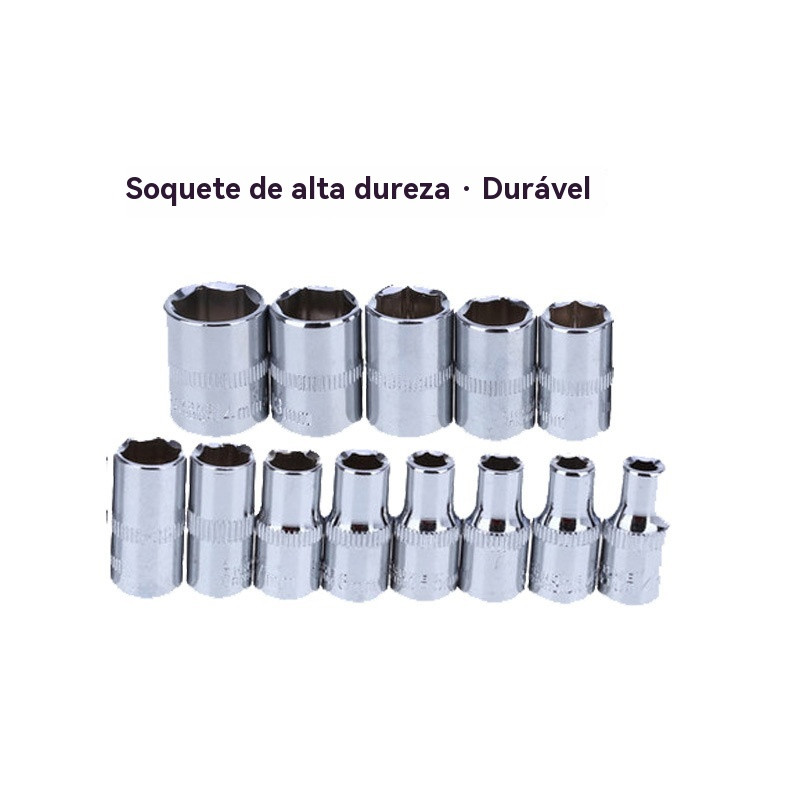Nome do Produto:Chaves Jogo Promoção Catraca Reversível Soquetes 46 Peças Maleta ﹊﹋﹊﹊﹋﹊💗﹋﹊﹋﹊💗﹊﹋﹊﹊💗﹋﹊﹋﹊﹋﹊ -Conteúdo da embalagem:45 componentes + 1 caixa de ferramentas -Tamanho:15*2.1*2.7CM -Peso do produto: 1057G -Cores do produto: Verde -Pode ser usado em ar condicionado, porca de assento, para-choques, pneus, travas de porta de carro, casa (contém básico), amplamente utilizado em bicicletas, estranguladores abertos, entre outras manutenções LISTA DE PEÇAS DA EMBALAGEM: - 13 Soquetes 1/4"( 4mm - 4,5mm - 5mm - 5,5mm - 6mm - 7mm - 8mm - 9mm - 10mm - 11mm - 12mm - 13mm - 14mm. - Ponta Fenda: 4mm - 5,5mm - 7mm. - Ponta Philips: 1 - 2 - 3. - 21 Soquetes com Bits{ - Ponta HEX: 3mm - 4mm - 5mm - 6mm - 7mm -8mm. - Ponta PZ: 1 - 2 - 3. - Ponta T: T10 - T15 - T20 - T25 - T30 - T40. - 03 Chaves Hexagonais L: 1,5mm - 2mm - 2,5mm. - 01 Cabo Fixo 1/4". - 02 Barras Extensão 50mm (2”) e 100 mm (4”). - 01 Extensão Flexível 150mm (6”). - 01 Catraca Giro Rápido 1/4". - 01 Cabo T de Contato. - 01 Junta Universal. - 01 Bit Adaptador. - 01 Maleta. O soquete usa AÇO TITANIUM vanádio de alta qualidade 50 bv30 formação de prensa a frio, torque 50% maior que o de aço carbono, protegido conta a ferrugem. A cabeça do lote adota materiais CR-V, para que a peça tenha uma resistência mais alta. Chave de catraca de giro rápido (ajuste positivo e negativo), o recurso de liberação rápida do botão de pressão garante que o soquete seja travado com segurança durante o uso, mas também permite fácil remoção ou troca rápida de soquetes. A catraca possui 45 dentes de alta qualidade, o que melhora a performance do trabalho que será executado. Pode ser usado em infinitos objetos desde objetos pequenos do ambiente domestico até reparro em caminhões.