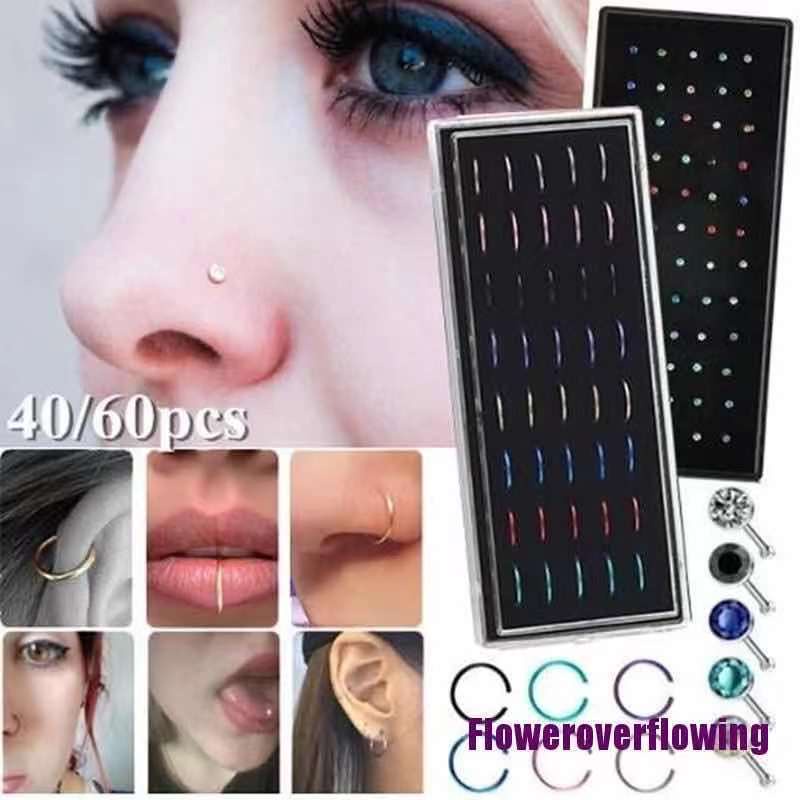 40 Piercing De Nariz Nostril Aço Com Pedra De Strass reto silicone Kit Luxo Unissex Masculino femino Fashion Top