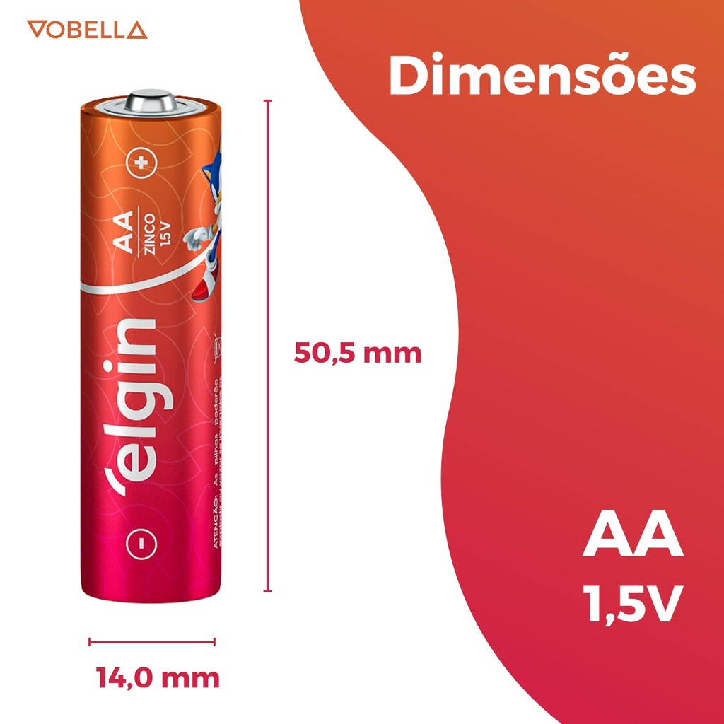 Pilhas Zinco AA Pequena Elgin – Energia confiável e duradoura Com o tubo de 40 Pilhas Zinco AA Pequena Elgin, você garante energia confiável para todos os seus dispositivos, evitando interrupções e garantindo que relógios, brinquedos, rádios e lanternas funcionem sem falhas. Por que comprar as Pilhas Zinco AA Pequena Elgin? Produzidas com materiais de alta qualidade e livres de metais pesados, essas pilhas oferecem alta durabilidade, desempenho consistente e excelente custo-benefício. Perfeitas para quem quer ter sempre pilhas à mão para emergências ou uso diário. Sobre o produto: -Marca: Elgin. -Contém: 1 tubo com 40 unidades. -Modelo: Pilha Zinco AA Pequena (R6P). -Voltagem: 1.5 Volts. -Não recarregável. -Dimensões: 50,5 x 14,0 mm. -0% de metais pesados. -Alta durabilidade. -Economia e qualidade. Indicado para: -Relógios. -Brinquedos. -Rádios. -Lanternas. -Controles remotos. -Dispositivos portáteis diversos. Modo de uso: -Abra o compartimento de pilhas do aparelho. -Remova as pilhas antigas, se houver. -Insira as Pilhas Zinco AA Pequena Elgin, respeitando a polaridade correta. -Feche o compartimento e utilize normalmente. Precauções: -Não recarregar. -Armazene em local seco e fresco. -Mantenha fora do alcance de crianças. -Evite exposição ao calor excessivo. Com o tubo de 40 Pilhas Zinco AA Pequena Elgin, você garante energia confiável e duradoura para seus dispositivos essenciais. Garanta já o seu tubo e nunca mais fique sem energia! Surgiu alguma dúvida? Entre em contato com a gente! Boas Compras :)