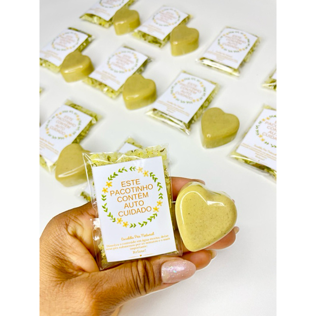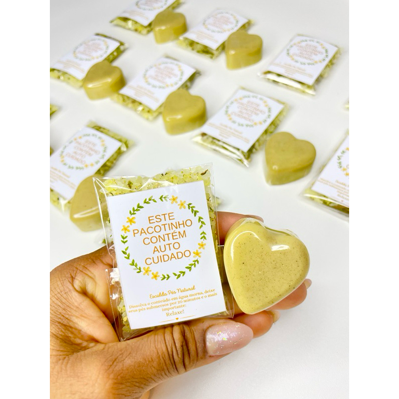 BENEFÍCIOS DO ESCALDA-PÉS ✔️ Alivia o cansaço dos pés ✔️ Promove relaxamento profundo ✔️ Ajuda a reduzir o estresse do dia a dia ✔️ Ideal para autocuidado, presentes e lembrancinhas ✔️ Aroma suave e natural ⸻ 🧼 BENEFÍCIOS DO SABONETE FACIAL DE ARGILA AMARELA ✔️ Limpeza suave ✔️ Ajuda a equilibrar a oleosidade ✔️ Pele mais macia e iluminada ✔️ Ideal para todos os tipos de pele BENEFÍCIOS DO SABONETE FACIAL DE ARGILA AMARELA ✔️ Limpeza suave ✔️ Ajuda a equilibrar a oleosidade ✔️ Pele mais macia e iluminada ✔️ Ideal para todos os tipos de pele você recebe: 20 escalda pés e 20 sabonete de argila amarela em formato de coração
