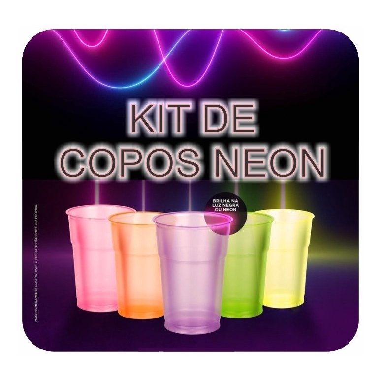 *** Copos brilham somente na Luz Negra! Mas sao lindos e vibrantes mesmo sem*** Copo Descartavel Gold Capacidade: 300 Ml *Cada pacote possui 50 copos da Mesma Cor. Enviaremos 4 Cores sortidas!