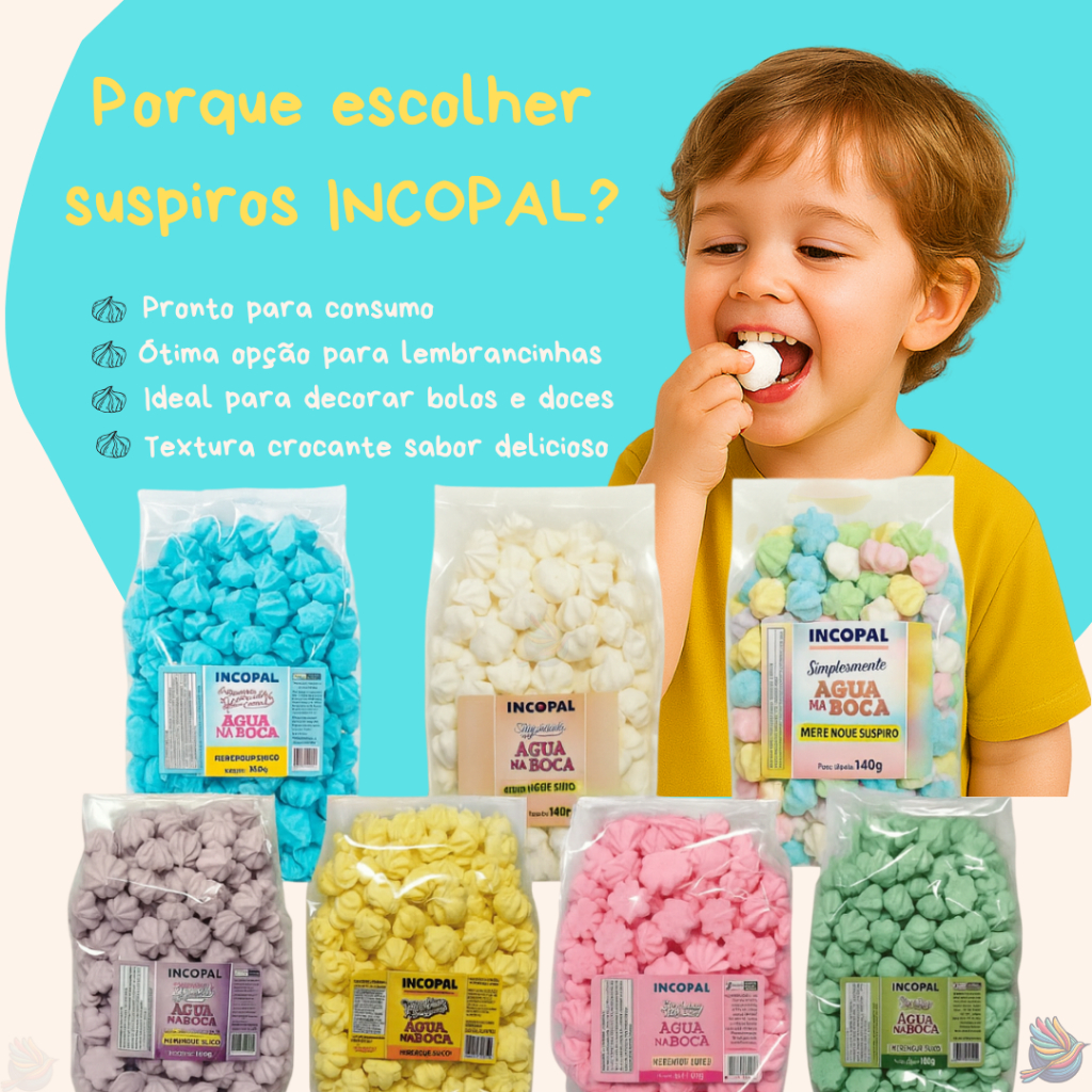 O que você pode fazer com esses Suspiros Coloridos? Com aproximadamente 400 mini suspiros crocantes por pacote, esse produto é extremamente versátil e ideal para dar um toque especial em qualquer ocasião. Você pode usar para: ✨ Decorar bolos e cupcakes – Perfeitos para deixar suas sobremesas mais coloridas e com um visual profissional. ✨ Montar taças e sobremesas no pote – Combina com chantilly, frutas, sorvetes, mousse e pavês. ✨ Servir em mesas de festa – Uma opção charmosa, barata e que rende muito para aniversários, casamentos e eventos. ✨ Acompanhar cafés e chás – Dá um toque doce e leve para acompanhar bebidas quentes. ✨ Montar kits e lembrancinhas – Basta colocar em saquinhos individuais para criar brindes irresistíveis. ✨ Consumir puro como snack – Leve, gostoso e crocante, agrada adultos e crianças. ✨ Criar mix coloridos com confeitos – Ótimo para lojas, cestas gourmet e embalagens personalizadas.