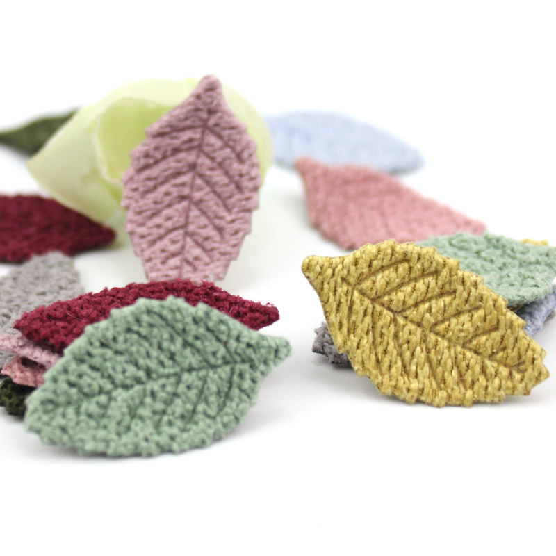 40Pcs 1.5 * 3cm Woolen Leaf Padded Flower Appliques Artesanato Headwear Acessórios De Cabeleireiro Clipes Decoração