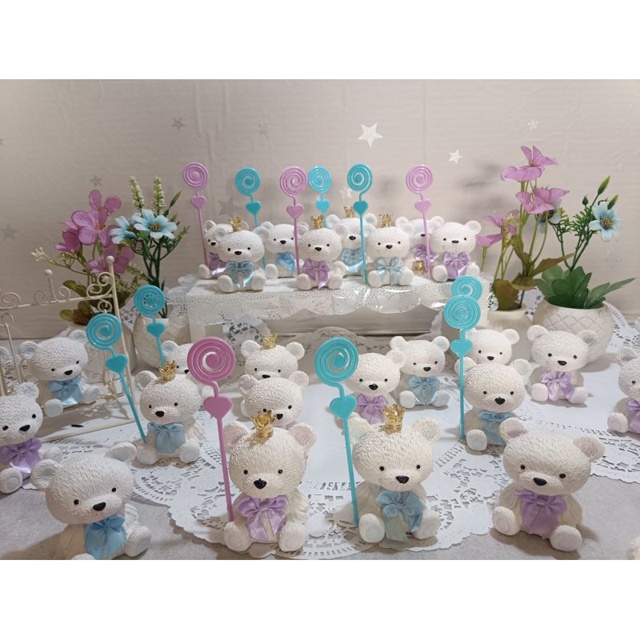 Lembrancinhas Chá de Bebê: Ursinho feito de gesso com suporte porta recadinho. Um Mimo. 6,5 cm O ursinho vai com espiral, TAG personalizada Ao clicar em adicionar no carrinho você vê as quantidades e valores. COROAS NÃO INCLUSAS: As coroas são presas com cola quente, devido ao transporte eles soltam, por isso elas não são inclusas neste anúncio. Você pode adquiri-las em outro anuncio. Ao comprar envie uma mensagem com o nome do bebê para TAG (Caso não seja enviado o nome a TAG irá escrito "chá de bebê") Atenção ao prazo de entrega, O aplicativo disponibiliza uma data prevista de entrega, ao realizar o pedido esteja ciente desta data e se irá te atender, caso contrário reveja se vale a pena ariscar, não adiantamos pedidos. Não nos responsabilizamos por datas de envios não previstas no anuncio.
