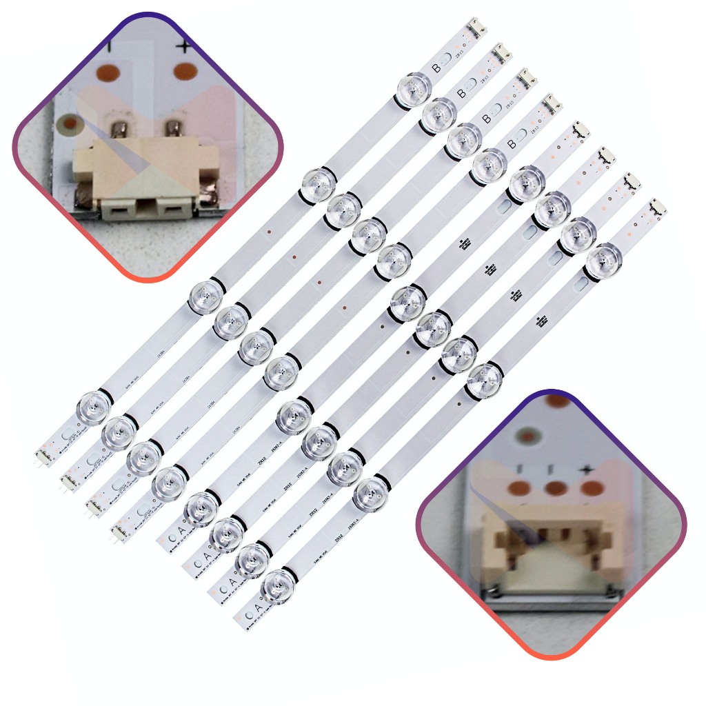 Kit Barras Led 42lb6200 42lb6500 42lf6400 42lf6500 42lx330h Itens inclusos: 01 Un. Kit com 8 Barras, sendo: - 4 Barras A com 4 LEDs - 4 Barras B com 4 LEDs Kit de barras compatível com os seguintes modelos de TV: - 42Lb5500 - 42Lb5600 - 42Lb5800 - 42Lb6200 - 42Lb6500 - 42Lf5850 - 42Lf6200 - 42Lf6400 - 42Lf6450 - 42Lf6500 - 42Lx330C - 42Lx330H - 42Lx530H - 42Ly340C - 42Ly540H - 42Ly540S - 42Ly760H Características: Material do kit: Alumínio Comprimento da barra:42,4cm e 40cm Tensão: 6V Marca: Mills ACOMPANHA FITA DUPLA FACE Restou alguma dúvida? Utilize o campo de perguntas abaixo para esclarecer todas as suas dúvidas! Temos uma equipe especializada para lhe atender! Produto Importado Compatível Código do Kit - PCI-BC-049