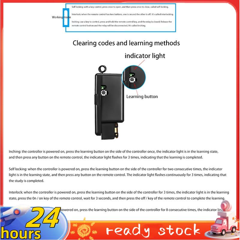 Bem-vindo a todos os clientes1. Controlador de alta potência, pode ser usado em muitos lugares 2. Escudo de alta qualidade, retardante de chama 3. Remoto Tem chaveiros, fácil de segurar 4. Tamanho pequeno, contato macio, pequeno, mas não simples Nome: 433Mhz RF 30A receptor remoto de longa distância Número do modelo do modelo do modelo: 2201H + KT05 Corrente: 30A Tipo de interruptor: controle remoto Distância remota de distância remota de 50 metros Tensão de Trabalho do Controlador de Controlador de Controlador: AC 220V Tamanho do controlador: 2,6 x 2,3 x 1,2 polegadas Peso do Controlador: 0,15 lb Corrente máxima de corrente máxima: 30A Terminal do controlador de controle de controle de controle de controle de linha: L/N Peso do controle remoto: 0,07 lb Frequência de RF: 433MHz Sensibilidade de recebimento da sensibilidade: mais de 97dbm Temperatura de trabalho: -30 - +80 graus Quantidade de controles remotos de armazenamento: cerca de 25 peças Corrente Quiescente: menos de 5mA Modo de Modulação de Modulação: Recepção sem fio superheterodiano ASK Modo de operação remoto do modo de operação: Momentário / Alternar / Modo Travado Aplicação de aplicação de fábrica: Família, Fazenda, Fábrica, Escritório, Supermercado Cor: Preto Material da tela: plástico Tamanho: 66 x 44mm Conteúdo da Embalagem: Interruptor de controle remoto 1 x controle remoto ON/OFFApenas o conteúdo da embalagem acima, outros produtos não estão incluídos. Nota: Fotografar com luz e exibições diferentes podem fazer com que a cor do item na imagem seja um pouco diferente da real. O erro de medição permitido é de +/- .