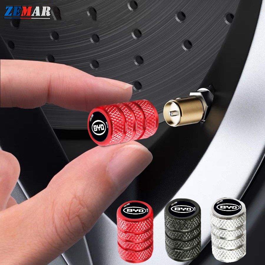 4Pcs BYD Tampas De Válvulas Para Pneus Carros Bicicletas Automotivas Peças Metálicas Impressas Atto 3 Yuan Mais Dolphin Seal U Han EV Forma Cilíndrica Com Logotipo De Carro