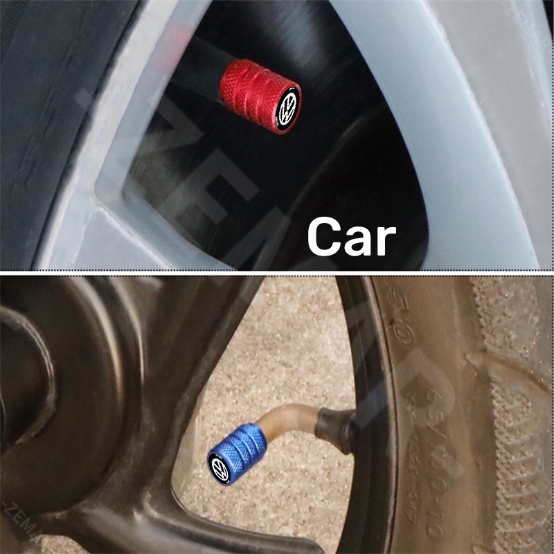 4Pcs Volkswagen Tampas De Válvulas Para Pneus Automóveis Peças Metálicas Bicicletas Automotivas Impressas Golfe Mk4 Mk7 MK3 jetta mk6 Up Passat b5 b6 b7 Tiguan VW Polo 9n 9n3 g Forma Cilíndrica Com Logotipo De Carro