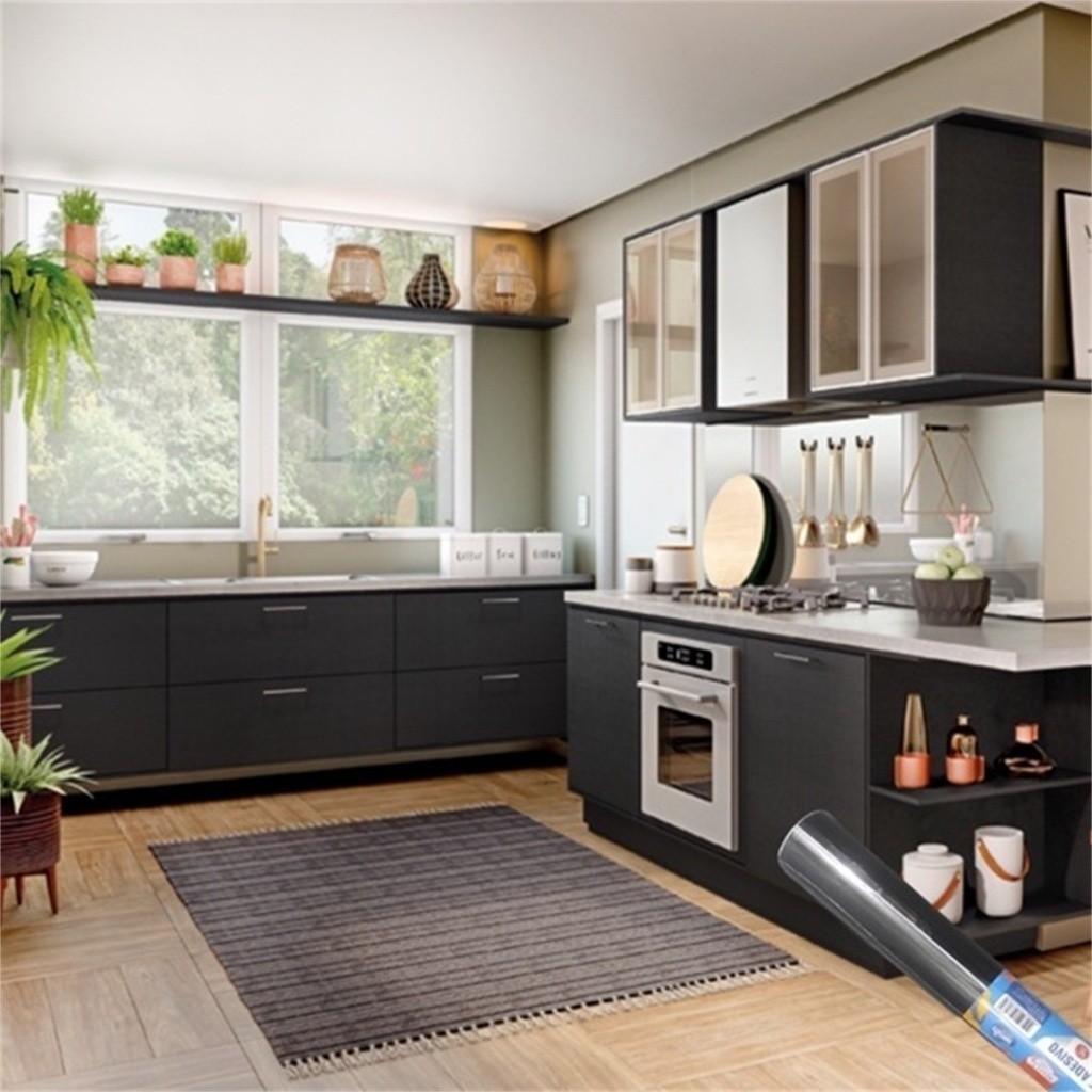 5/10/15/20 Metros Papel de Parede Preto Fosco+ Espátula Aplicação Adesivo Autocolante Cozinha Moveis