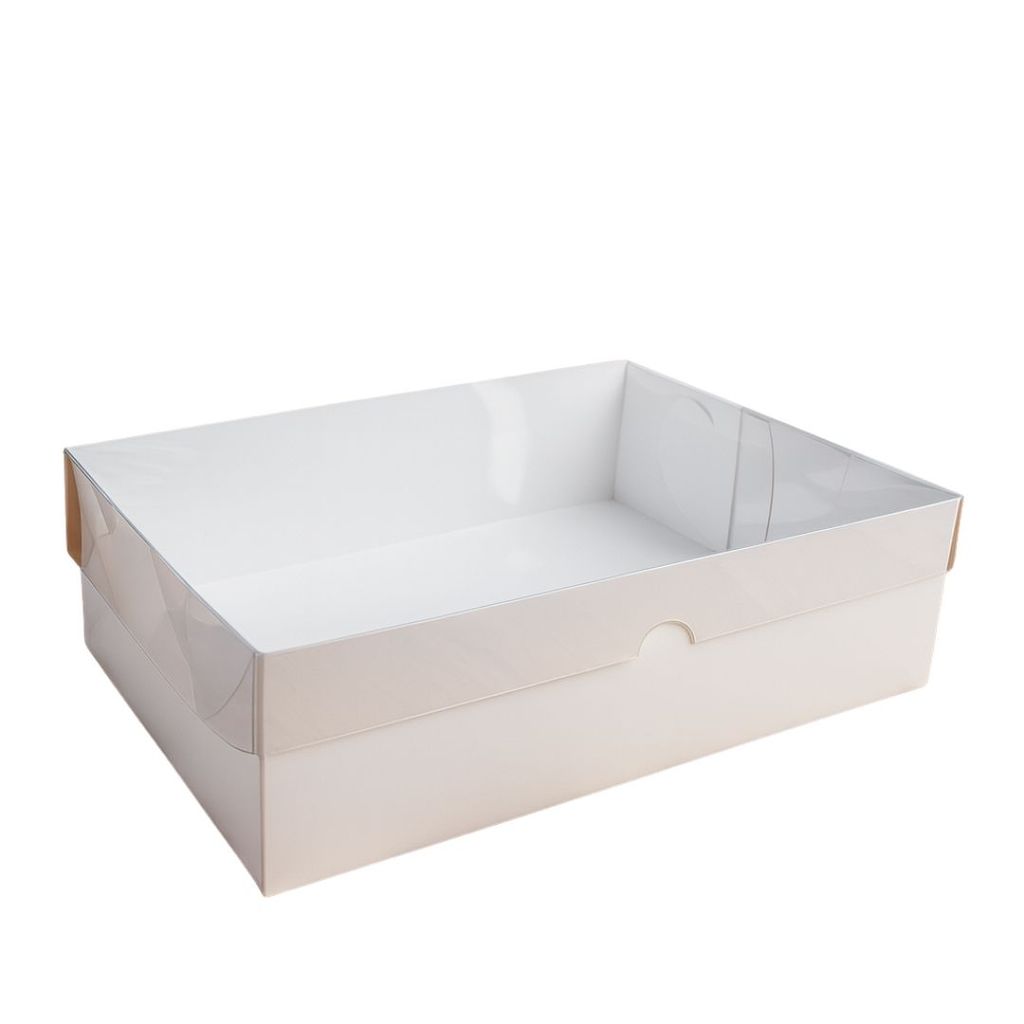 CAIXA BRANCA TAMPA ACETATO RETANGULAR 32X18X8 MEDIDAS: Altura: 8cm, Largura: 10cm, Comprimento:32cm *NÃO ACOMPANHA BERÇO