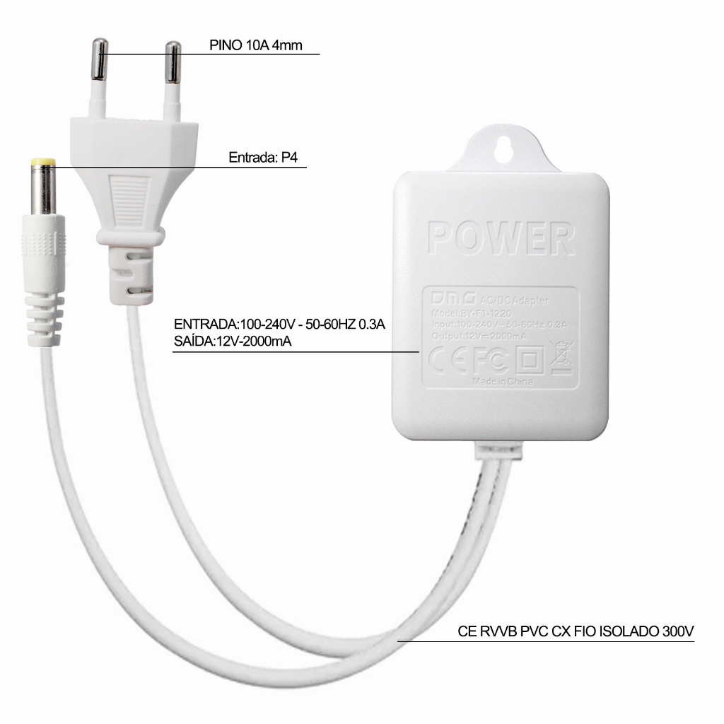 Observe que o tamanho do plugue do produto é de 5,5 mm e não é compatível com plugues de 3,5 mm! Fonte original para câmera IP speed dome, prova d'agua 12V-2A Plug:5.5mm P4 Alimentação: Bi-volt (Full range): 100 ~ 240 Volts / AC Saída: 12 Volts DC com PLUG P4 Corrente :12V- 2 Amperes ~50-60HZ Potência Máxima: 24 Watts Adaptador Indicado para Fita led, Equipamentos CFTV (Câmeras de segurança, DVR), Modem, TV a cabo Net Sky vivo, Modem fibra, Roteador, radio, Decoders, Balanças diversos eletrônicos. Acompanha: 1 - Fonte de energia 12V-2A Branca NÃO ACOMPANHA CÂMERA IP SPEED DOME, PROVA D'ÁGUA