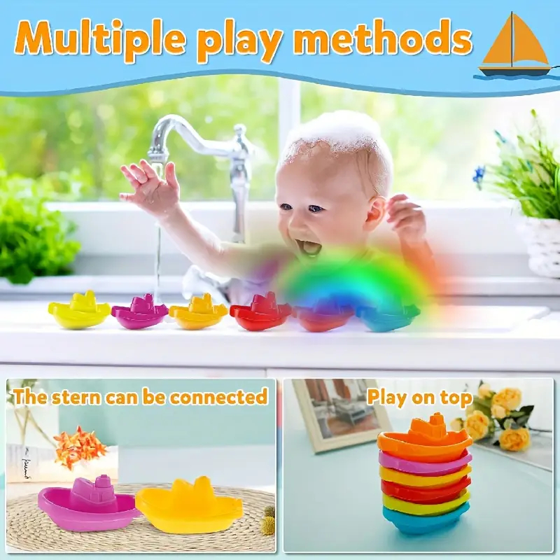 5 Barquinhos de Brinquedo Encaixe Torre Brinquedo para Bebe Banho Barcos de Banheira Coloridos