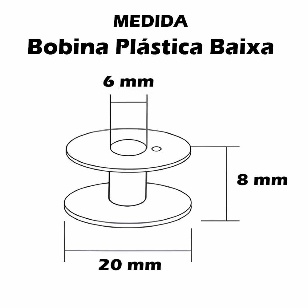 * Bobinas Baixas Plásticas Transparentes é ideal para quem busca excelente desempenho, organização e costuras com precisão. Produzidas em plástico cristal resistente, permitem visualizar a quantidade de linha restante, garantindo praticidade e eficiência no uso diário. * * Atenção: Caso não tenhamos a bobina no modelo transparente, enviaremos cores sortidas conforme disponibilidade de estoque. * * Compatibilidade * * Compatível com a grande maioria das máquinas domésticas Singer que utilizam bobina baixa plástica (caixa de bobina Apolo), incluindo: * - Singer: - 240, 242, 244, 247, 248, 249, 288, 872, 875, 964, 966, 974, - 2301, 2302, 2315, 2316, 2328, 2330, 2343, 2616, 2630, - 2818, 2868, 2918, 2968, - 3902, 3903, 3930, 4802, 4814, 4830, 4930, - 5417, 5430, 7380, 9832, 9836, - Inspiration 4218, Facilita 43, - ML405, ML418, DP002, HD205, HD210, NL118, - PL002, PL410, PL418, PL438, PP418, PP436, QL453, entre outras. * Especificações * - Tipo de peça: Bobina Baixa Doméstica - Material: Plástico/Acrílico Transparente - Altura total: 1 cm (centro com 1 cm / bordas ~0,8 cm) - Altura interna: 0,7 cm - Diâmetro: 2 cm - Formato: discos convexos (centro mais alto que as extremidades) - Quantidade: 5 unidades - Cor: Transparente (podendo ser enviada em cores sortidas conforme estoque) * Verifique sempre o modelo da bobina original antes da compra para garantir total compatibilidade. * * Dúvidas? Fale com a ZIGZAG! * - Nossa equipe está disponível no chat para te ajudar com qualquer dúvida. - Se precisar de maior quantidade ou kits personalizados, montamos pacotes especiais com desconto. - Pedidos confirmados até as 14:00 são enviados no mesmo dia!