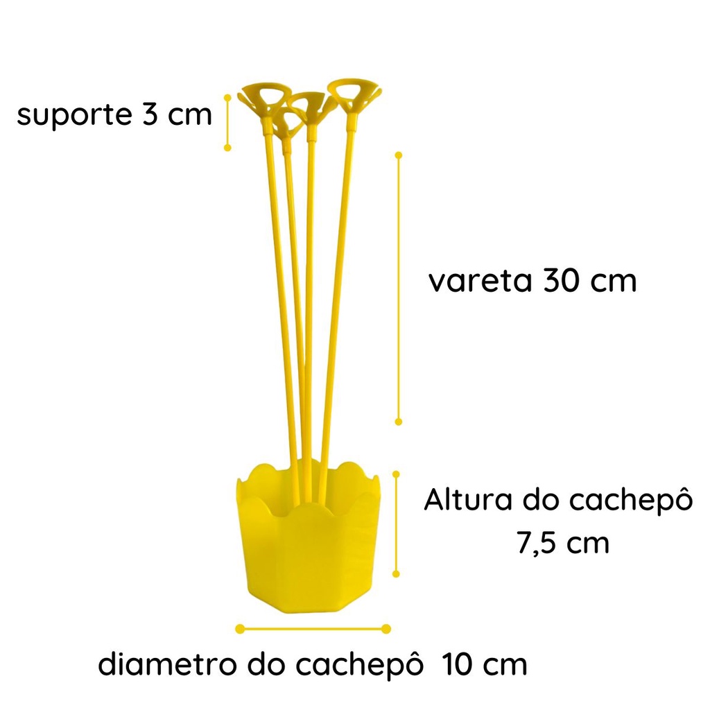 kit com 5 unidades de cachepot centro de mesa. cada cachepot acomponha 4 varetas + 4 suportes .As varetas podem ser cortadas para ajustar a altura dos balões. Medidas da hastes + suporte = 33 cmNão acompanha balões.cachepot Altura do cachepô 7,5 cmLargura do cachepô 10 cm Material: Plástico Vareta Suporta balões de 5 a 9 polegadas tamanho balão comum .O kit é fornecido desmontado. Centro de mesa Ideal para lembrancinha de festa, podendo ser usado como porta doces, porta pipoca, arranjo de flores.
