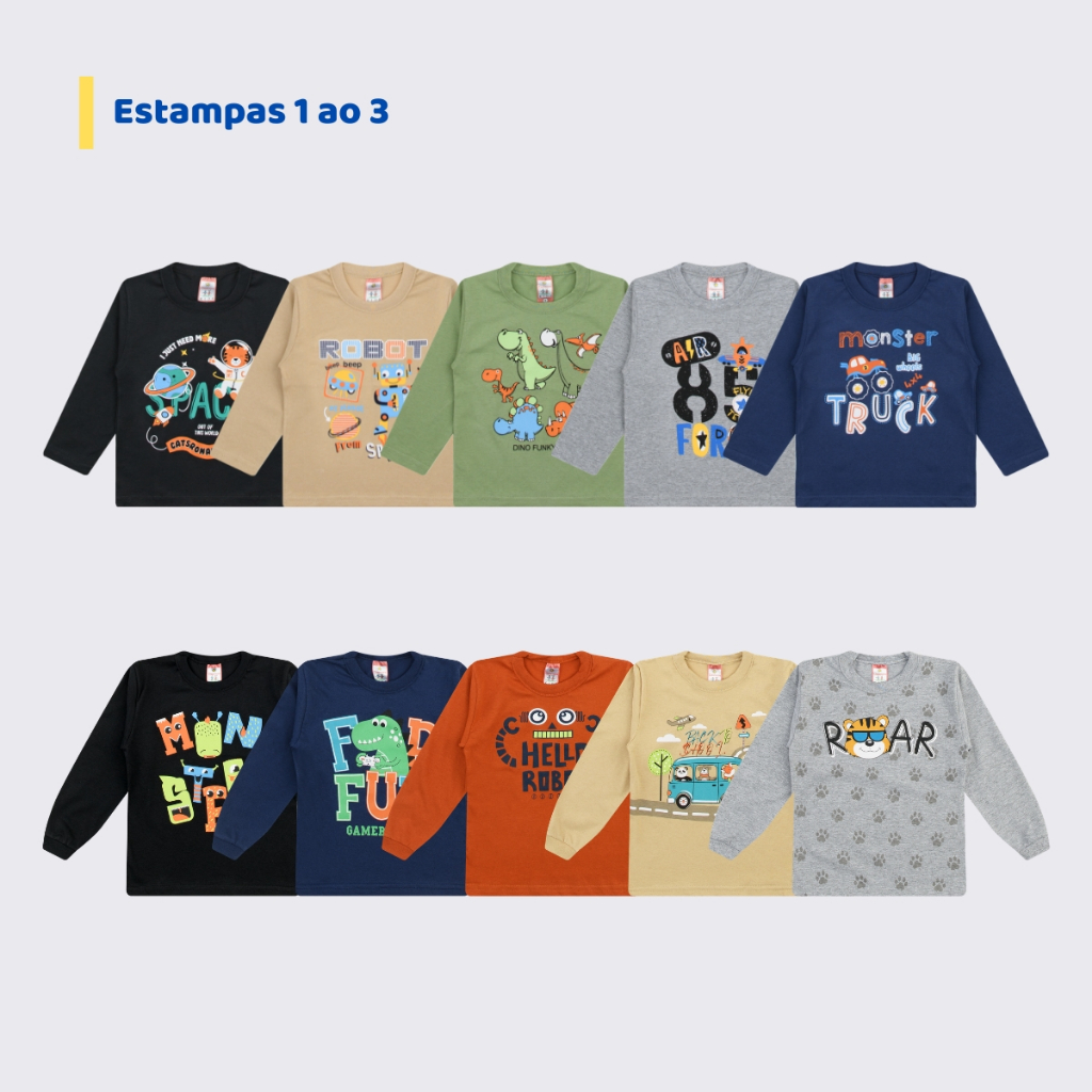 5 Camisetas Manga Longa Infantil Menino Inverno Frio Atacado