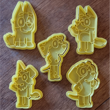 5 Cortador Biscoito Molde Forma BLUEY Marcador Carimbo Pasta Americana Massa Impressao 3d Kit com 5 cortadores marcador