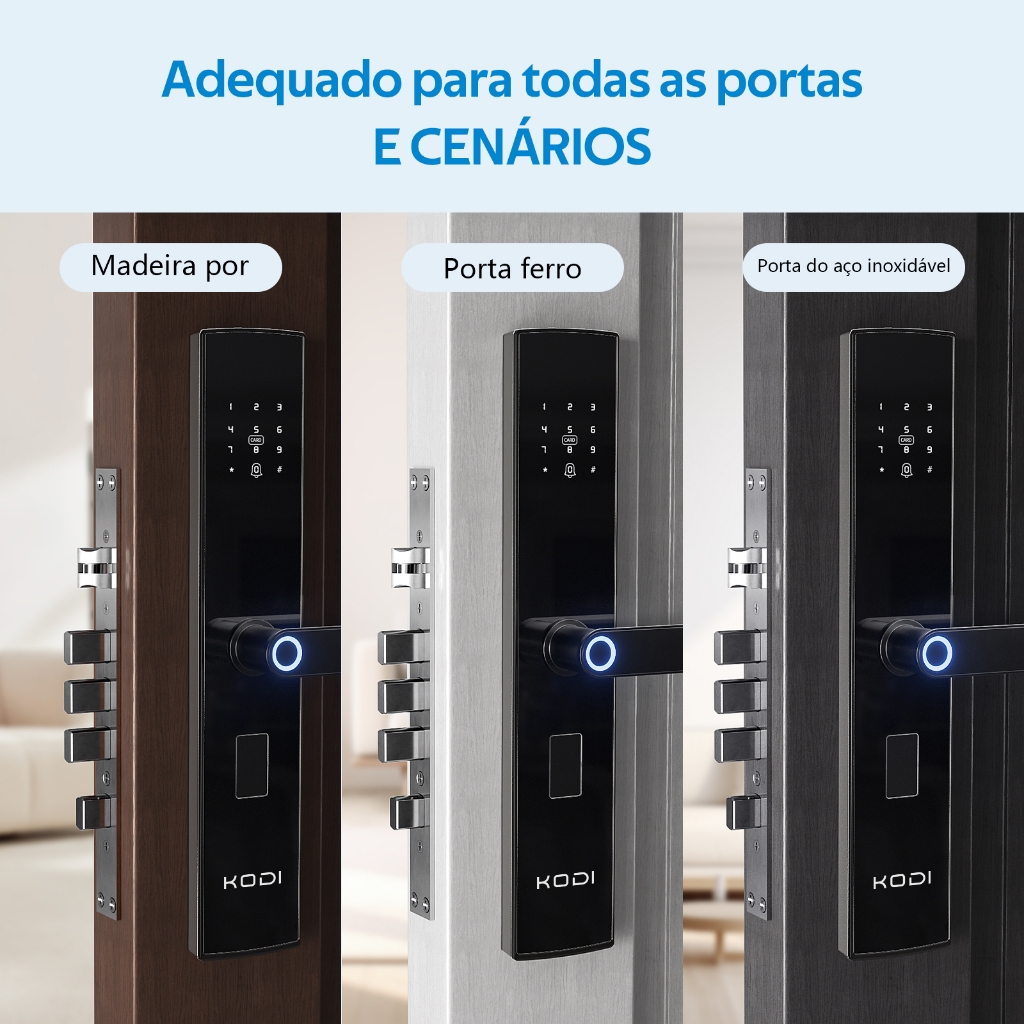Fechadura Digital Inteligente KODI - Segurança Biométrica com 4 Formas de Acesso! Características Principais: 4 Métodos de Acesso: Impressão digital, senha, cartão IC e chave física (flexibilidade para toda a família) Desbloqueio Rápido: Autenticação em ≈1.5 segundos (prático para o dia a dia) Bateria Durável: Até 12 meses com 4 pilhas AA (alcalinas recomendadas) + entrada USB Type-C para emergências Resistente ao Clima: Funciona perfeitamente entre -25°C e 70°C (ideal para o Brasil) Compatibilidade: Android 4.3+ e iOS 7.0+ (conectividade com smartphones) Especificações Técnicas: Sensor Biométrico: Preciso e à prova de fraudes Armazenamento: 50 digitais, 150 senhas e 110 cartões IC Alimentação: 4 pilhas AA 1.5V + USB Type-C Consumo Energético: Apenas 65μA em standby (economia de energia) Peso: 1.84kg (construção robusta) Ideal Para: Por que escolher esta fechadura? Perfeita para quem busca conveniência e segurança! Com quatro formas de desbloqueio, ela se adapta à rotina de toda a família. O sensor biométrico rápido e preciso garante acesso imediato, enquanto a bateria de longa duração evita preocupações. Resistente a variações climáticas, é a escolha ideal para imóveis residenciais, comerciais ou de aluguel! Conteúdo da Embalagem: 1 x Fechadura Digital Inteligente 1 x Chave Mecânica de Emergência 1 x Conjunto de Cartões IC 1 x Manual em Português Garanta sua segurança agora! Clique em COMPRAR e modernize sua porta com tecnologia de ponta! Nota: Compatível com portas de até 5 cm de espessura. Instalação simples e rápida! #ProprietáriosDeCasas (segurança moderna sem complicação#FamíliasComCrianças (acesso fácil e seguro)#Idosos (praticidade no dia a dia)#AirBNBHosts (controle de acesso sem chaves físicas)#QuemEsqueceChaves (tranquilidade com múltiplas opções)#TecnologiaParaTodos (integração com smartphones)#PresentesInteligentes (utilidade e inovação)#CasaInteligente (conforto e automação)