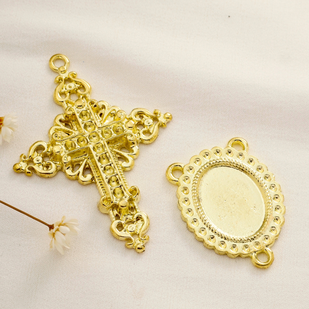 5 Entremeio Personalizável Para Terço + 5 Crucifixo 6x4,3 cm Dourado Latonado Alta Qualidade Asas da Fé
