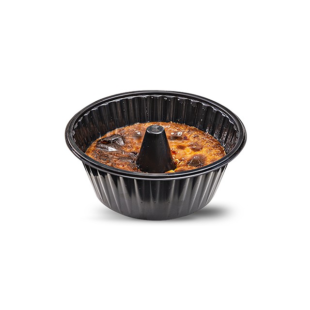 G 232 forno Forma para pudim. Embalagem no mercado, utensílio na cozinha Embalagens forneáveis que permitem congelamento e aquecimento, ideais para armazenamento, transporte e preparo dos alimentos. IMPORTANTE: A tampa não pode ir ao forno (elétrico, a gás e ou micro-ondas). Bandeja para Pudim - 1.500ml Ref.: G 232 Dimensões Int.: Ø192X80mm Ext.: Ø222X96mm Material: Base CPET e tampa PET Possibilidades de uso: bolo, cake, delivery, doces, mini torta, mousse, pudim, restaurante, salgados, sobremesas, tele-entrega, tortas