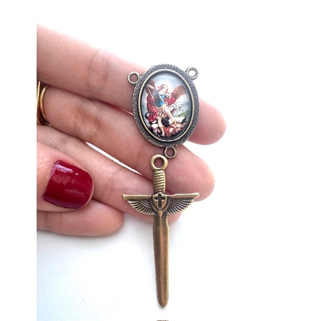 5 KIT de São Miguel - Espada + Entremeio - Kit Quaresma São Miguel 5 Entremeios - Personalizado São Miguel imagem frente 3 x 2cm 5 Espadas de São Miguel 4,7 X 3 cm Banhos Ouro Velho ou Níquel Material: Zamac