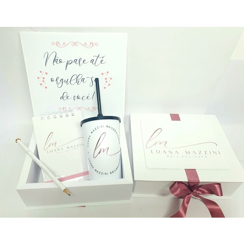 LEIA COM ATENÇÃO, ANTES DE FECHAR O PEDIDO! Produto de qualidade a acabamento superior! o bloquinho tem acabamento com arame wire-o mais forte e elegante. Trabalhamos com capa dura e Laminada para maior durabilidade do produto. PERSONALIZAMOS COM SUA LOGOMARCA!! O kit Curso vai com 5 kits e é composto pelos seguintes itens: - CAIXA PERSONALIZADA COM A LOGO - BLOQUINHO PERSONALIZADA COM LOGO, CAPA DURA e LAMINADA! Bloquinho com até 50 folhas brancas em papel offset 90gr. Capa dura com impressão colorida + laminação brilho. (Tamanho 11x 16cm) - LAPIS PERSONALIZADOS - COPO PERSONALIZADO Copo em acrilico personalizado como preferir, em transfer laser, não sai na agua! Cores disponivéis: BRANCO E TRANSPARENTE. (Verificar cores de tampas disponivéis após a compra!) Tamanho 480ml - - - - - - - - - - - - - - - - - - - - - - - - PASSO A PASSO DE SUA COMPRA Ao recebermos a comprovação do pagamento, daremos início as criações de layout e prévias de como seu kit ficará. Alinharemos todo o layout após a confirmação do pedido por aqui em até 3 dias!
