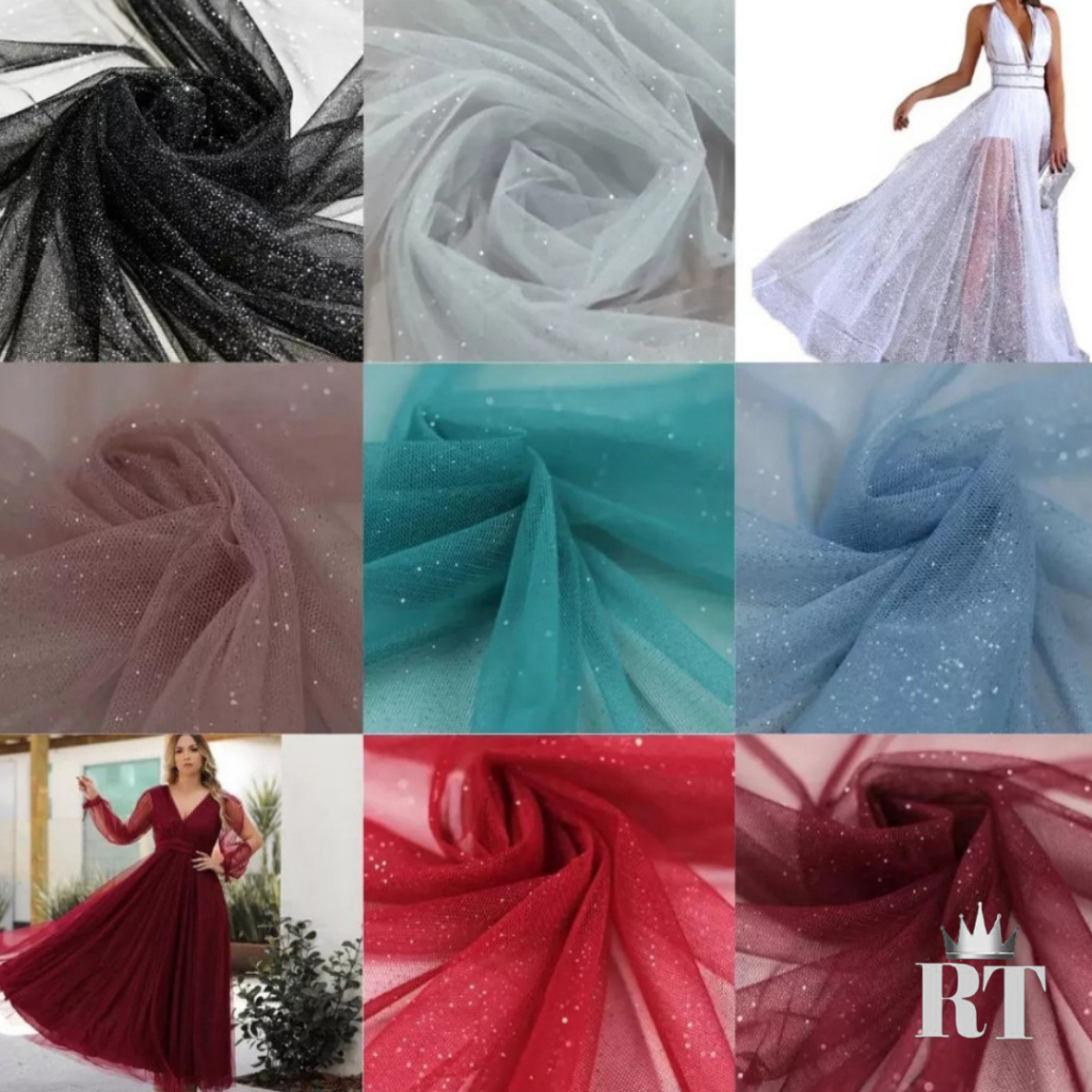 5 METROS DE TECIDO TULE GLÍTER (TULE COM BRILHO) 5m x 1,50m VÁRIAS CORES!!!