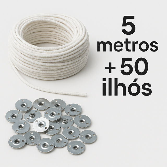 5 Metros Pavio Trançado 2mm + 50 Ilhos Velas Algodão Artesanais Decorativas Lembrancinhas B2030