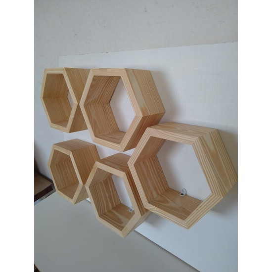 5 Nichos Colmeia Decorativos de Ambientes Madeira Pinus