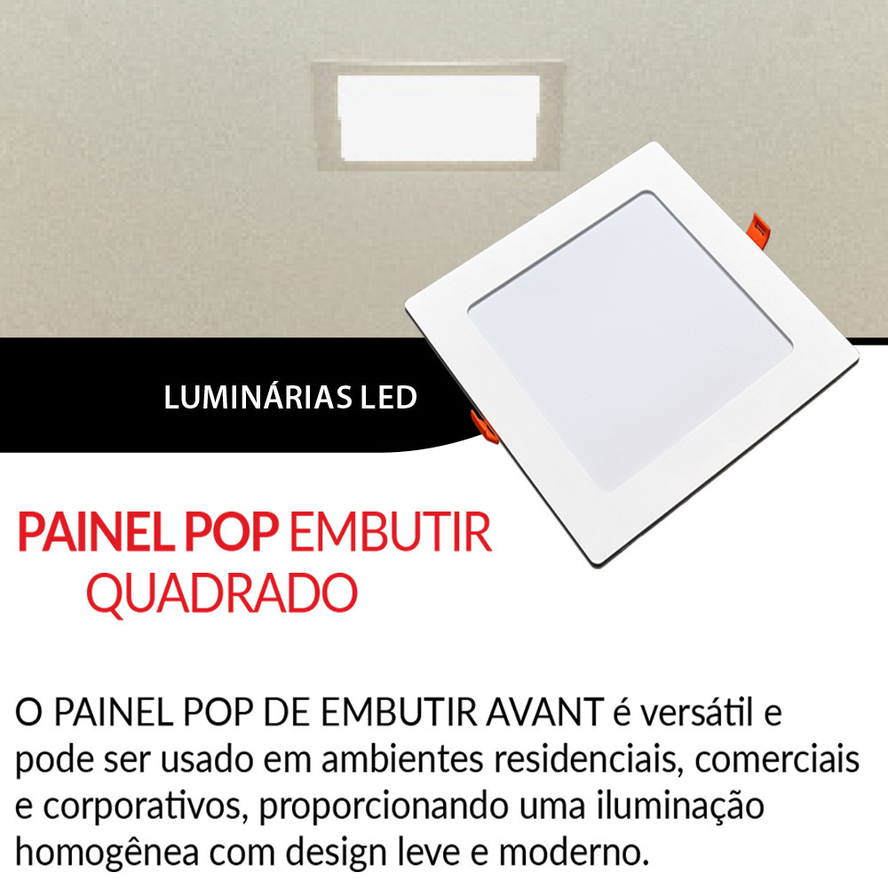 5 Painel Led Pop Quadrado de Embutir 6500W 18W Casa Teto Avant