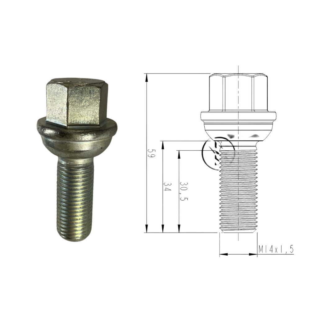 Jogo com 5 Parafusos Zincados MB Sprinter com Rodas de Ferro (Parafuso Curto) Parafuso tem 34mm de rosca (medida descontando a cabeça do parafuso) Não serve nos modelos que usam o parafusos comprido para roda aluminio BITOLA M14 PASSO DA ROSCA 1,5 COMPRIMENTO DA ROSCA 34mm COMPRIMENTO TOTAL 59mm CHAVE 19 RESISTÊNCIA MECÂNICA 10.9 ACABAMENTO Zincado / Zinc Plated Referência: 601.401.02.70 / 901.401.00.70 Contém: 5-Parafusos Marca: ZM .