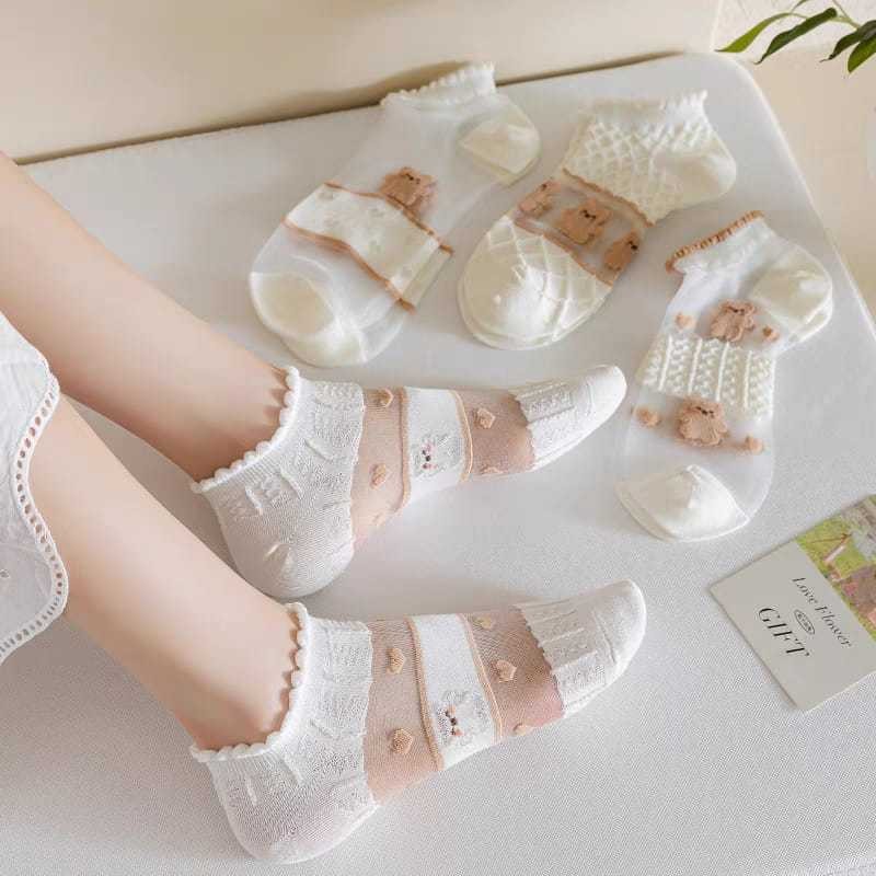 5 Pares/Lote De Verão Meias Brancas Curtas Femininas