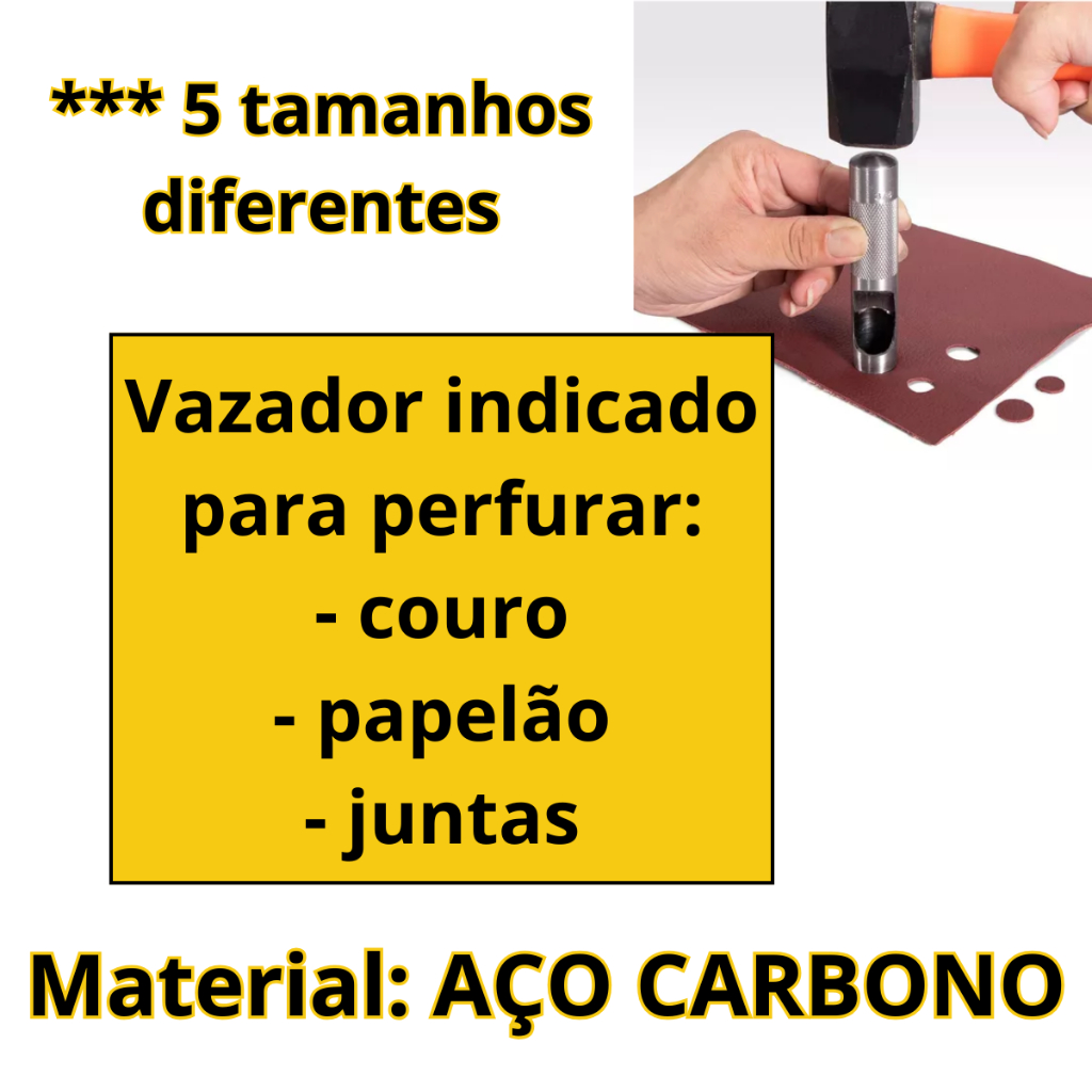 5 pcs Perfurador 4,6,8,10,12mm Couro Borracha Papelão Vazador Aço