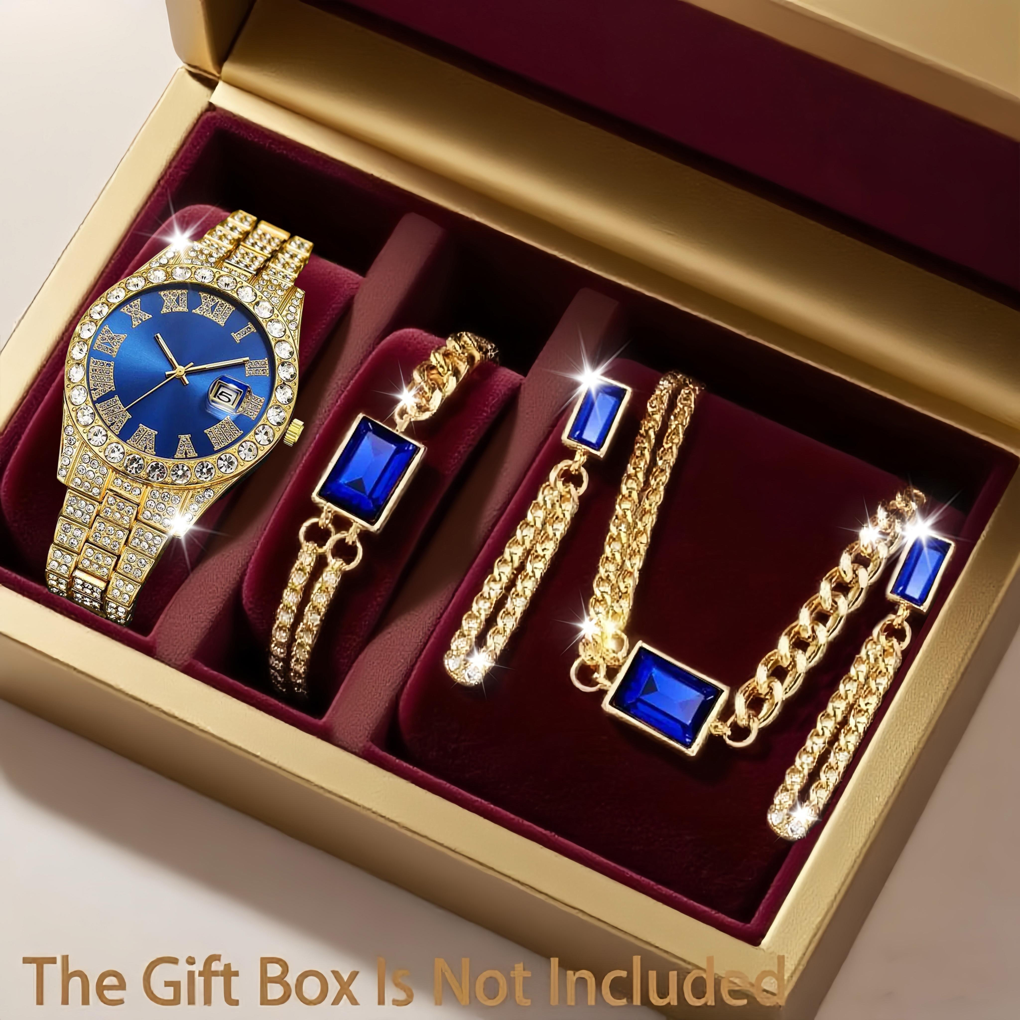 5 peças conjunto de relógio feminino luxo aço inoxidável calendário quartzo com mostrador de diamante sintético