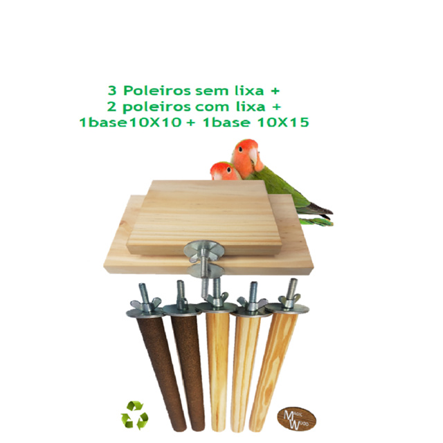 Produto ideal para manter as unhas do pet no tamanho ideal !!!! Acompanha sistema de fixação para gaiola ou viveiro. Usamos cola atóxica a base de água sendo totalmente seguro para nossos pets. Diminui o estresse. Ajuda a manter as unhas no tamanho certo. É uma forma prática de lixar as unhas dos pássaros sem causar incômodo e estresse, pois é uma fora terapêutica de manter as unhas no tamanho certo, evitando o corte. Metade do poleiro é revestido por uma lixa, para que sempre que a ave pousar, as unhas sejam lixadas. obs.: As bases são plainadas, lixadas, mas por tratar de material orgânico pode correr um leve empenamento após o produto finalizar. Dimensional: Diâmetro de1,6 cm com comprimento de 20 centímetros (Acompanha 1 porca borboleta + 2 arruelas por peça) A lixa ocupa 50%do diâmetro do poleiro Base 10X10 cm (Acompanha 1 porca borboleta + 1 arruela por peça) Base 10X15 cm (Acompanha 1 porca borboleta + 1 arruela por peça)