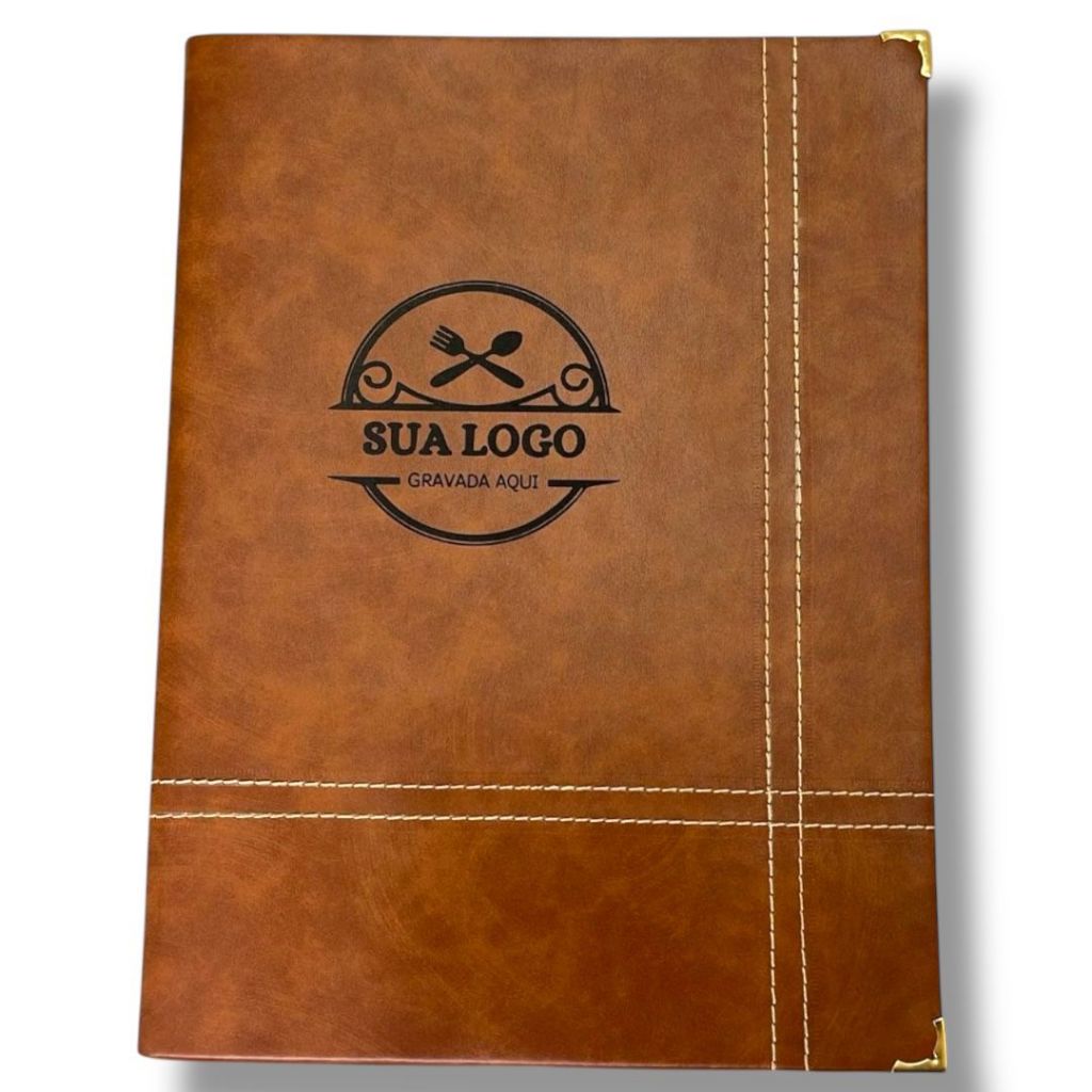 núncio se refere a 5 unidades de PORTA CARDAPIOS CAPA DURA para folha A4 gravadas com a SUA logomarca! Acompanha 7 folhas plásticas ATENÇÃO caso necessite de mais saquinhos, é necessário adicionar antes de despacharmos seu produto (não é possível adicionar ou trocar os saquinhos depois de fixar os rebites) cobramos R$0,50 em cada saquinho a mais ( pagamento por pix) TAMANHO: 25cm de largura x 34cm de altura -Você já tem alguma marca/logo para colocar no Cardápio? Se sim, me mande todas as informações, seja em imagem, em Corel ou PDF. Pode mandar no próprio chat do mercado livre. LEMBRANDO QUE NÃO TEM COMO ENVIAR A IMAGEM PARA NÓS ANTES DE FINALIZAR A COMPRA! Se não tiver não tem problema, podemos montar uma logo para você personalizar seu porta cardápios. Montamos um layout e mandamos para sua aprovação. Se por ventura seu desenho conter muitos detalhes, pedimos que escolha tirar alguns detalhes que possa aparecer na gravação do laser (gravação em preto, não conseguimos adicionar cor)- estilo rústico e elegante. Observações: Material Premium costurado. Qualidade garantida. Rebite fixado para maior resistencia Personalize o seu negócio!!!