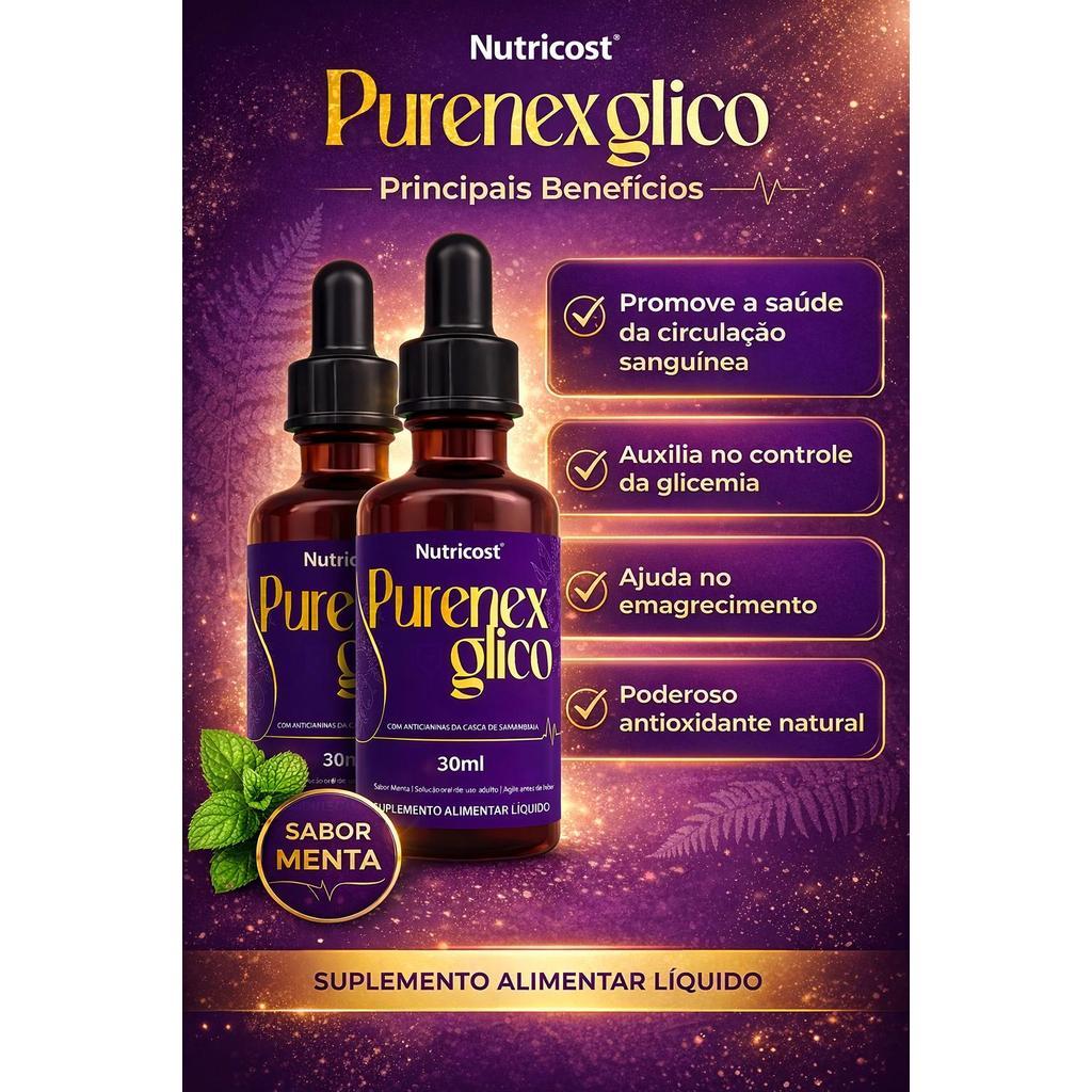 Descrição Purenex Glico Nutricost é um suplemento alimentar líquido desenvolvido para complementar a rotina diária de quem busca mais equilíbrio e cuidado com a saúde. Sua fórmula contém antocianinas da casca de samambaia, reconhecidas por sua ação antioxidante, auxiliando na proteção das células contra os danos causados pelos radicais livres. Possui apresentação líquida, sabor menta, com conta-gotas que facilita o consumo e a dosagem diária. Produto indicado para adultos que desejam incluir um suplemento prático e eficiente no dia a dia. Modo de usar: consumir 20 gotas (1 ml) ao dia, diretamente na boca ou diluído em água. Agite antes de usar. Este produto não é um medicamento. Não exceder a recomendação diária. Manter fora do alcance de crianças. Gestantes, lactantes e pessoas sob orientação médica devem consultar um profissional de saúde antes do consumo. Conteúdo: 30ml Forma: suplemento alimentar líquido Não contém glúten.