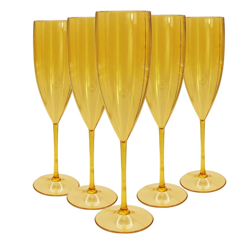 5 Taças De Champanhe Acrílico Cristal Colorido 160 Ml P/ Festas Eventos Casamentos Formaturas Reveillon Natal