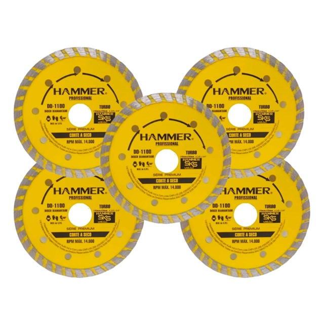 Distribuído por Ismafer Ferramentas - Este anúncio acompanha : * 5 Discos Diamantado Turbo 110 X 20 mm GYDD1100 - Descrição : * Alta Performance, alto rendimento, extra fino, corte rápido, corte a seco e refrigerado trazendo maior versatilidade, - Aplicação : * Basalto, pedras naturais, lajotas, tijolo de concreto, refratários, contrapiso de cimento, concreto, vigas, alvenaria, tijolo baiano, telhas. - Especificações técnicas : * Espessura do disco : 1.0 mm * Diâmetro do disco : 110 mm x 20 mm * Diâmetro do furo : 20 mm * Rpm máximo : 14.000 Garantia: 3 meses - Sku : KIT16632-5 Distribuído por Ismafer Ferramentas