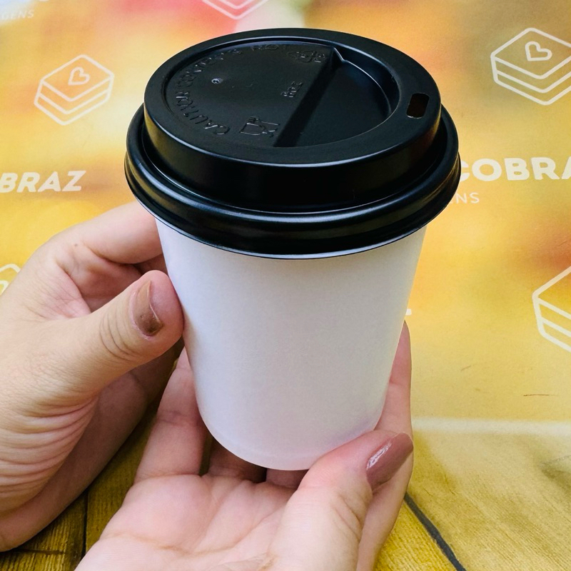 50 a 200 copo de papel 270 ml com tampa preta biodegradável capacidade 270 ml Com tampa preta tampa furo e respiro