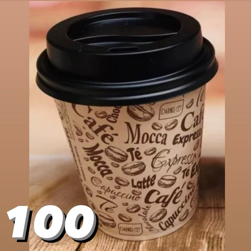 50~200 COPO DE PAPEL C/TAMPA BIODEGRADÁVEL 240 ml 8Oz DARNEL MOCCA OFF//