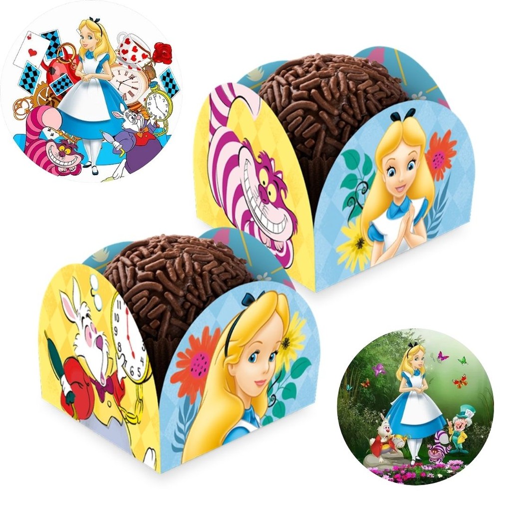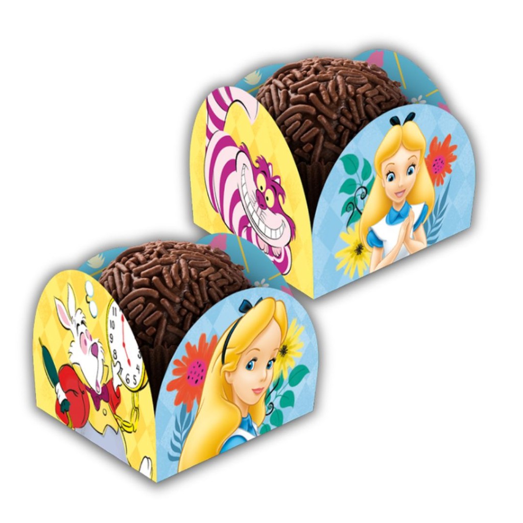 PORTA FORMINHA 4 PETALAS ALICE NO PAIS DAS MARAVILHAS PRODUTO LICENCIADO REGINA FESTAS IDEAL PARA DECORAÇÃO DE DOCES FESTA ANIVERSARIO MEDIDAS 3,2X3,2X2,5 CENTIMETROS